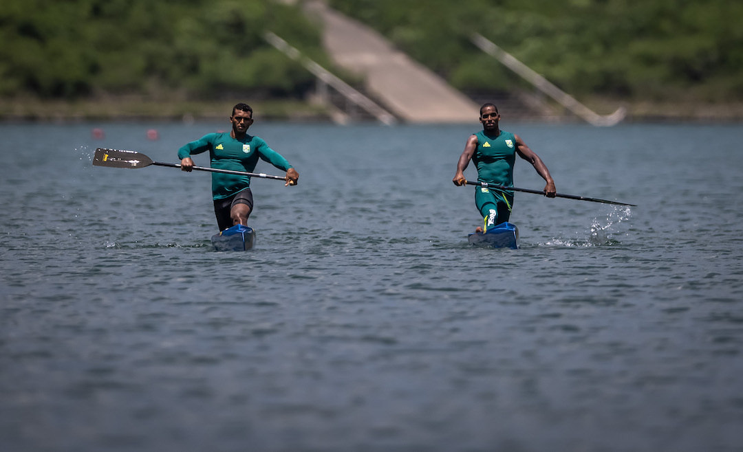 The duo formed by isaquias queiroz and jacky godmann is in the semifinals of the c2 1000m, speed canoeing category.